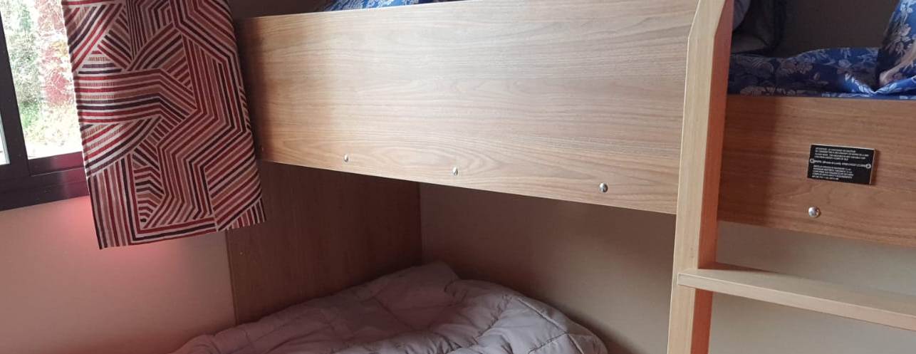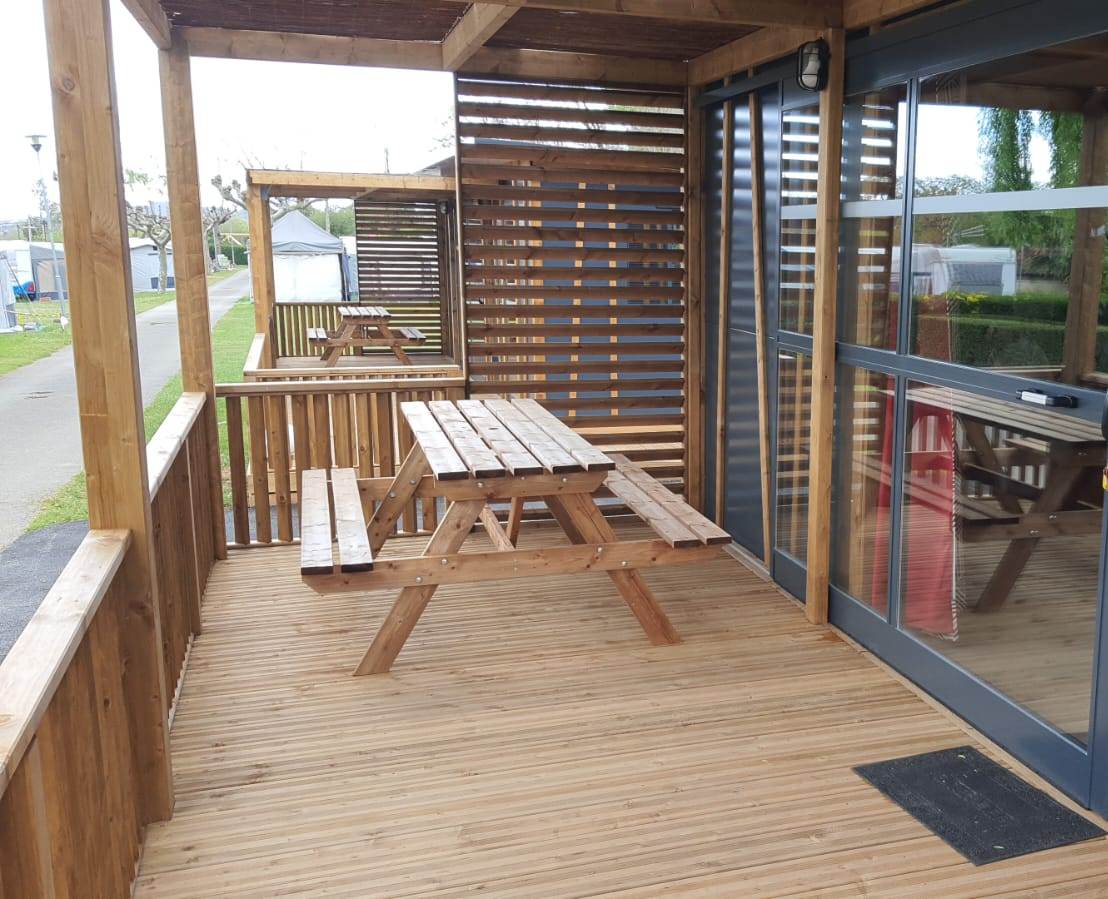 Alojamiento en Bungalow Luxe Liberty noche del Viernes y Sabado. accesible a minusválidos. Superficie de 52m2. Capacidad máxima de 6 plazas distribuidas en 2 habitaciones: